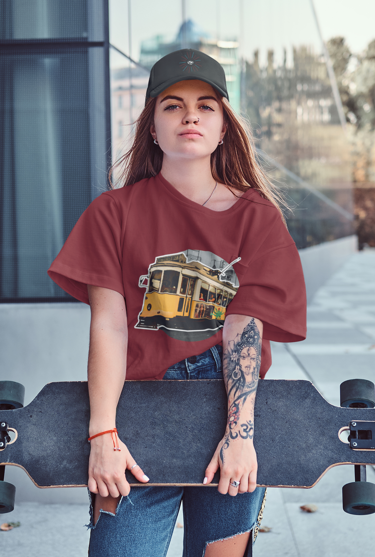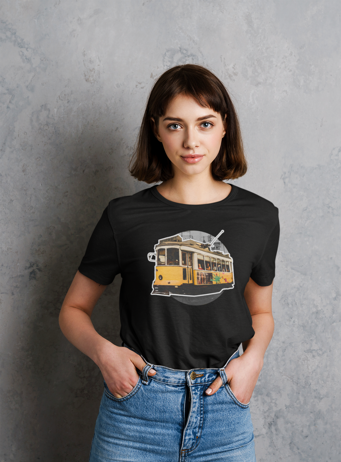 Create a nostalgic connection to Lisbon in style. This t-shirt celebrates the city's famous yellow tram 28 that connects Martim Moniz with Campo Ourique, and passes through the popular tourist districts of Alfama, Baixa, Estrela and Graca. It is perfect for anyone that visited or is thinking about visiting the portuguese capital city.